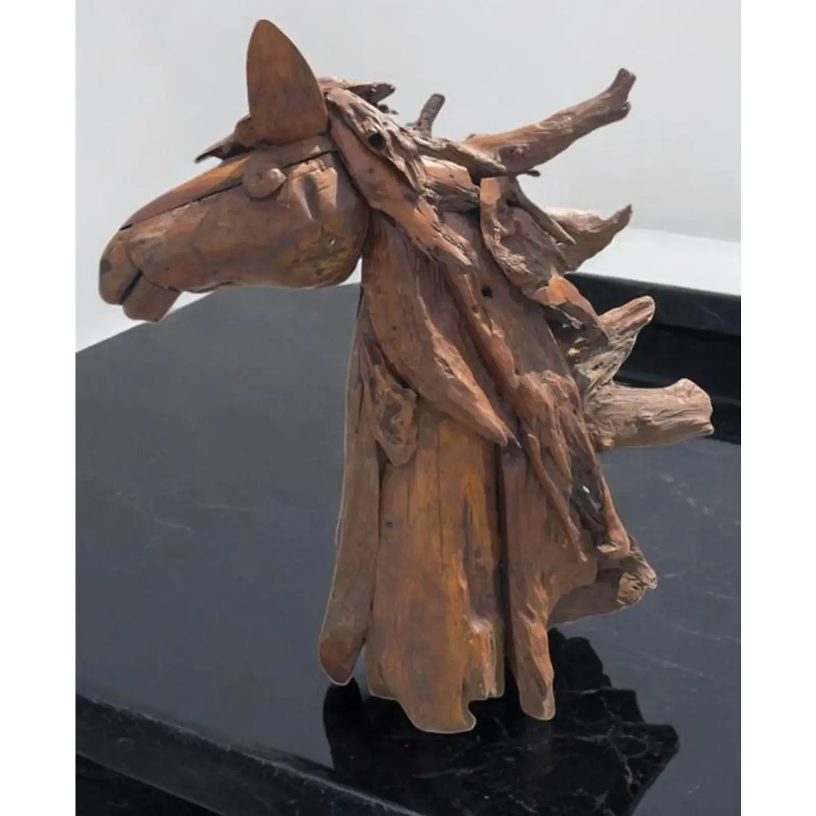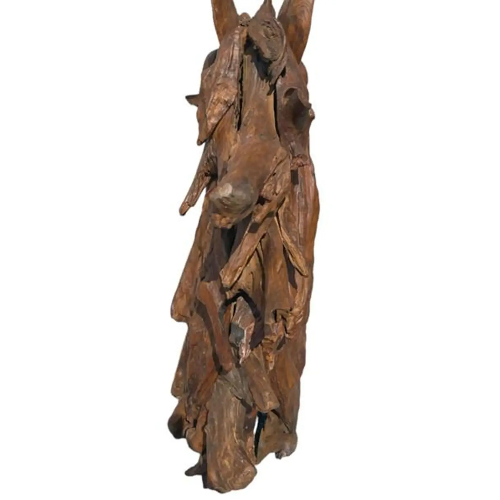 The 3′ Driftwood Horse Head Sculpture is a handcrafted, rustic freestanding piece for indoor or outdoor decor.