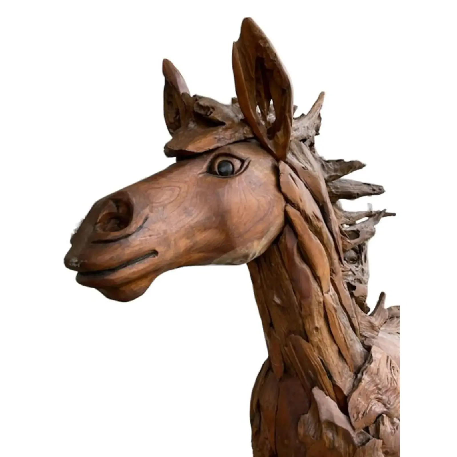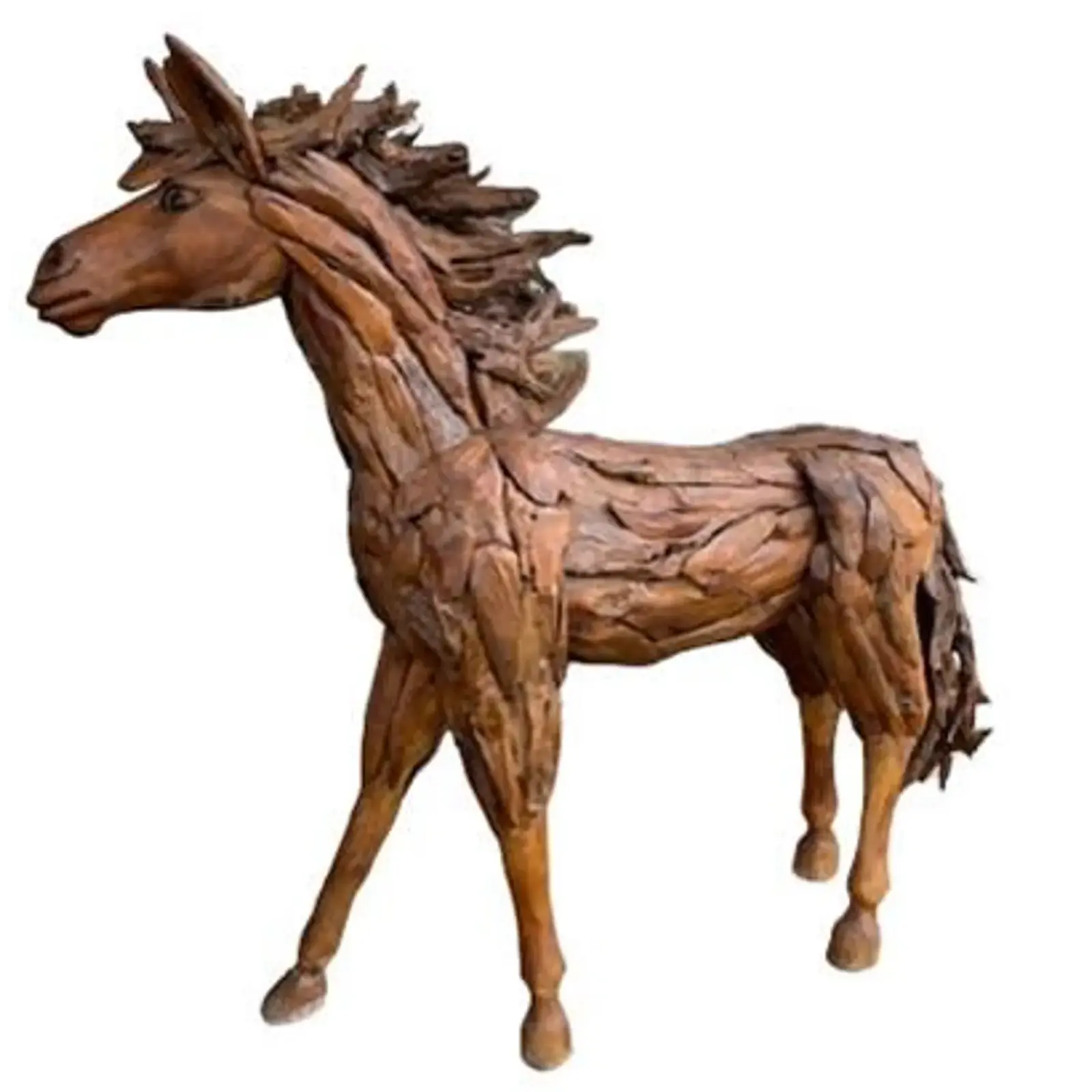 This Standing Horse Sculpture is a hand-crafted, life-size piece standing 6.5 feet tall and nearly 8 feet long.