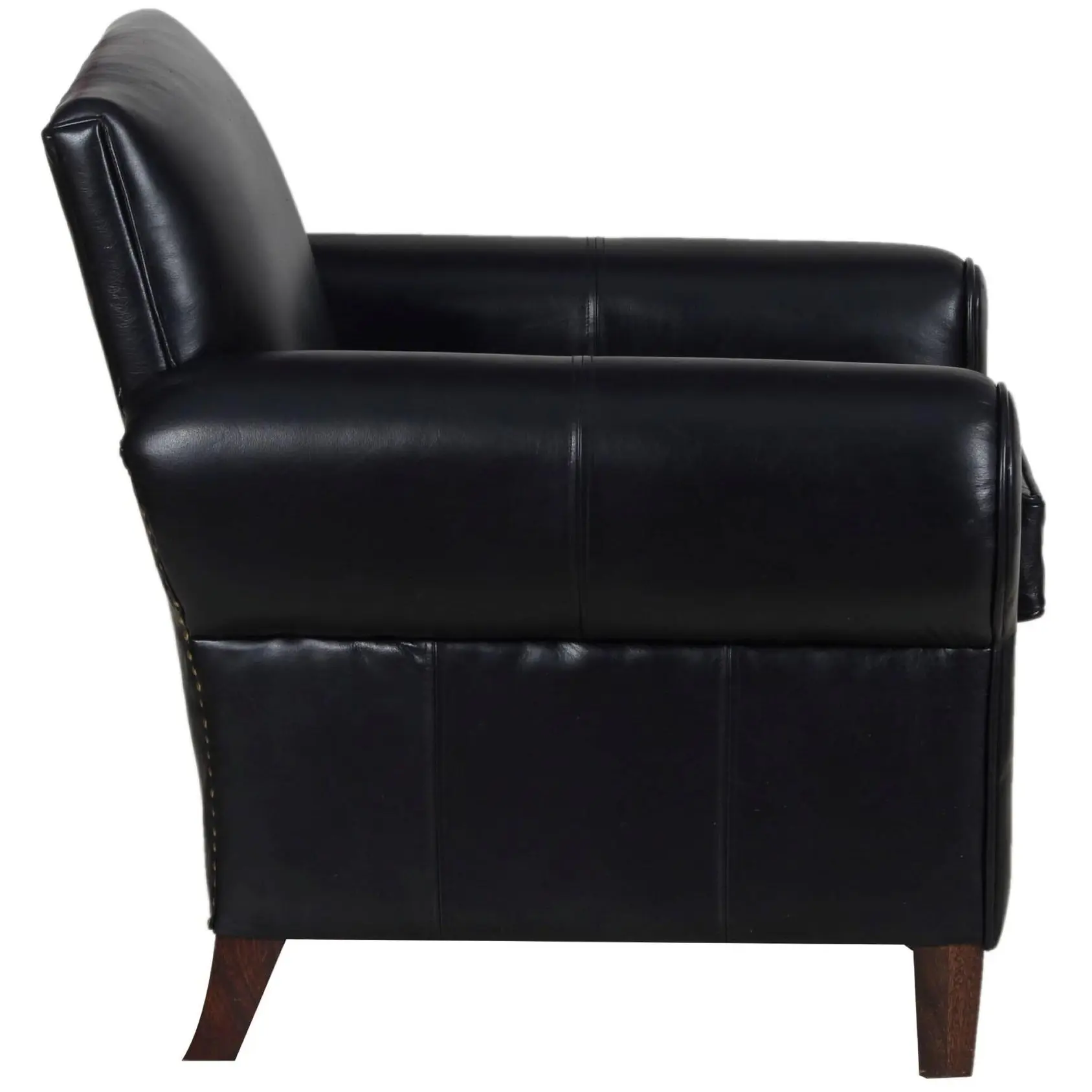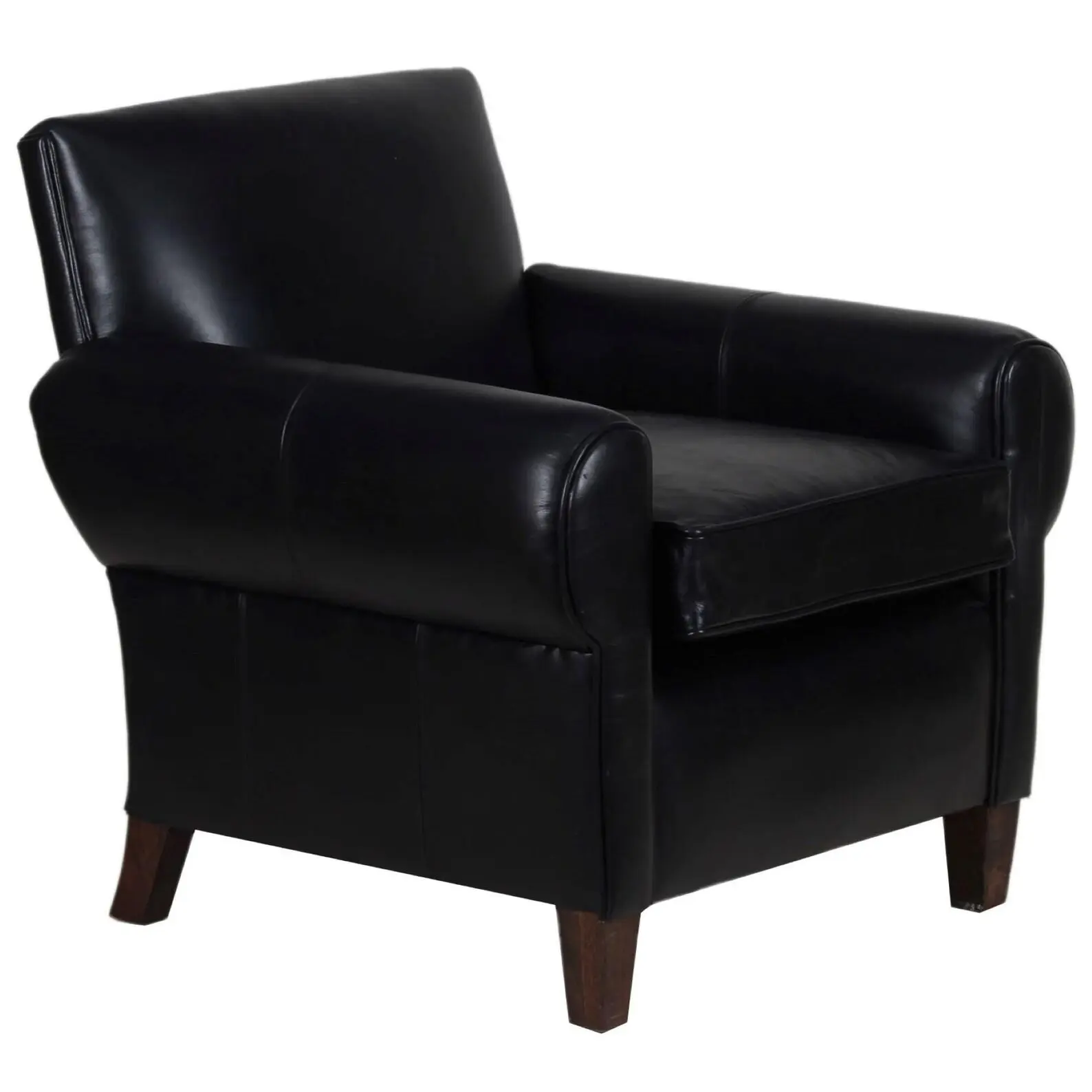 This classic armchair features genuine black leather upholstery and an oversized design, perfect as a club lounge accent chair for a living room or office.