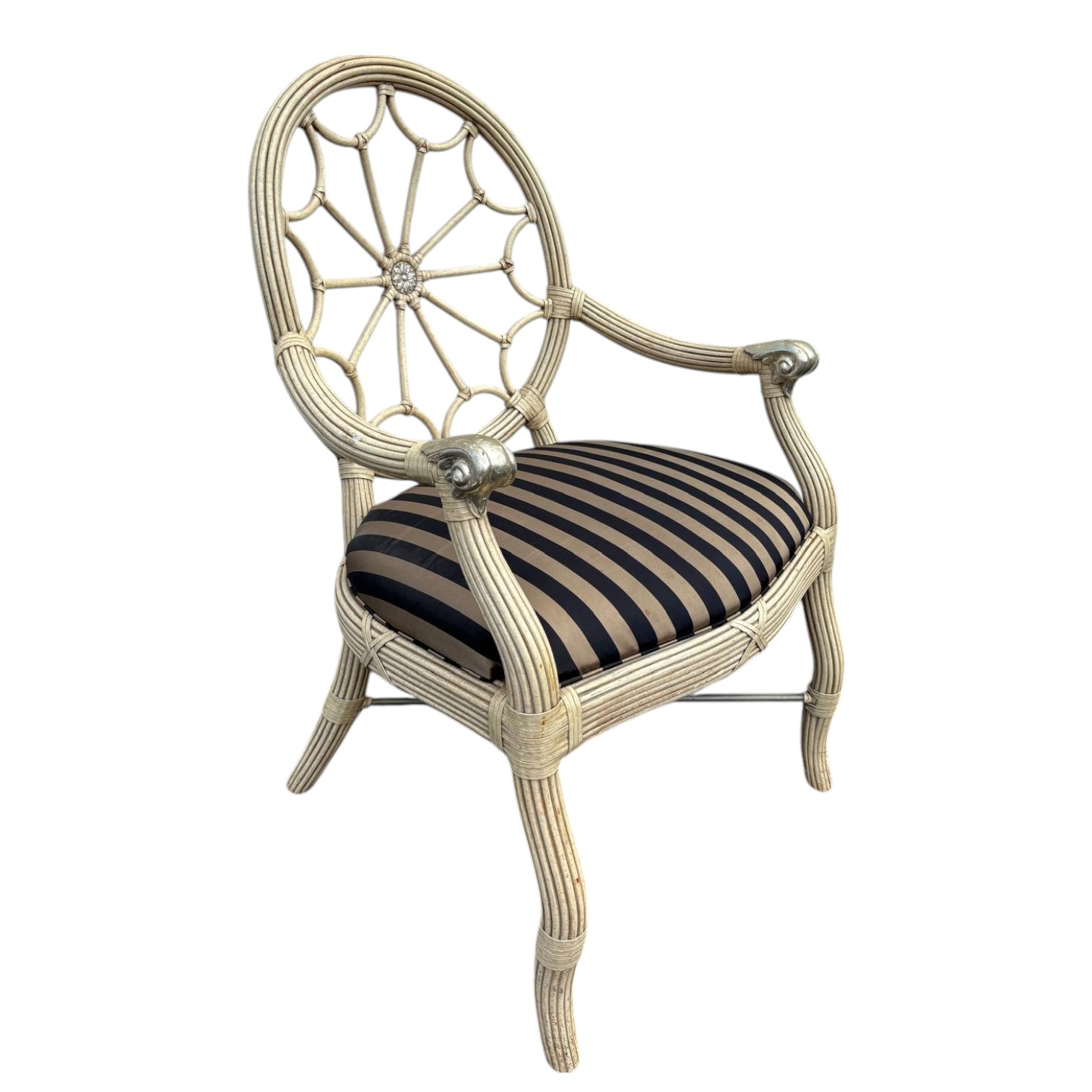 Gorgeous one of a kind Ferguson Copeland, Ltd. side chair. Black & tan custom upholstered seat with a reeded base. There are some minor stains on the upholstery from use.